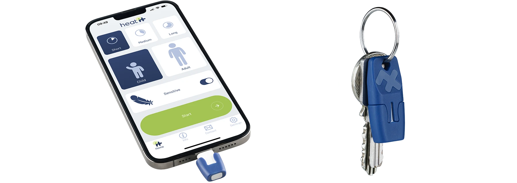 Με την εφαρμογή μας, μπορείτε να εξατομικεύσετε τη θεραπεία σύμφωνα με την ευαισθησία σας. Γι' αυτό το λόγο, το heat it® είναι επίσης απόλυτα κατάλληλο για παιδιά από 3 ετών (αυτοχρησιμοποίηση από 12 ετών). Συνολικά, η δωρεάν και διαισθητικά σχεδιασμένη εφαρμογή heat it® προσφέρει 12 διαφορετικές επιλογές θεραπείας.